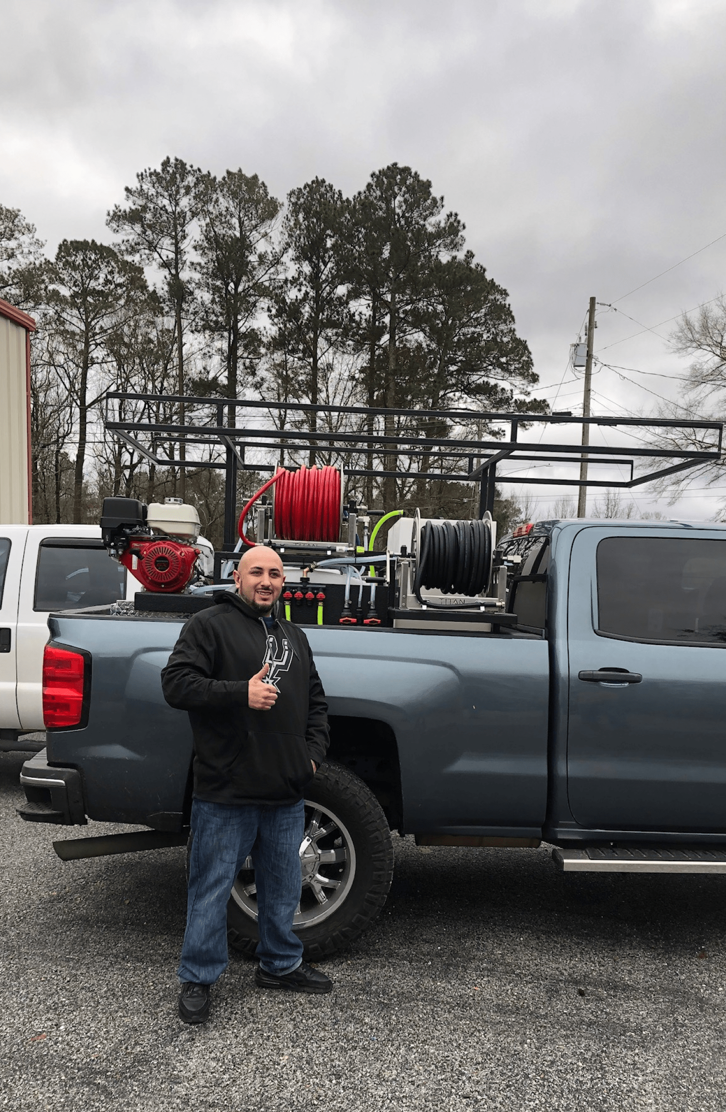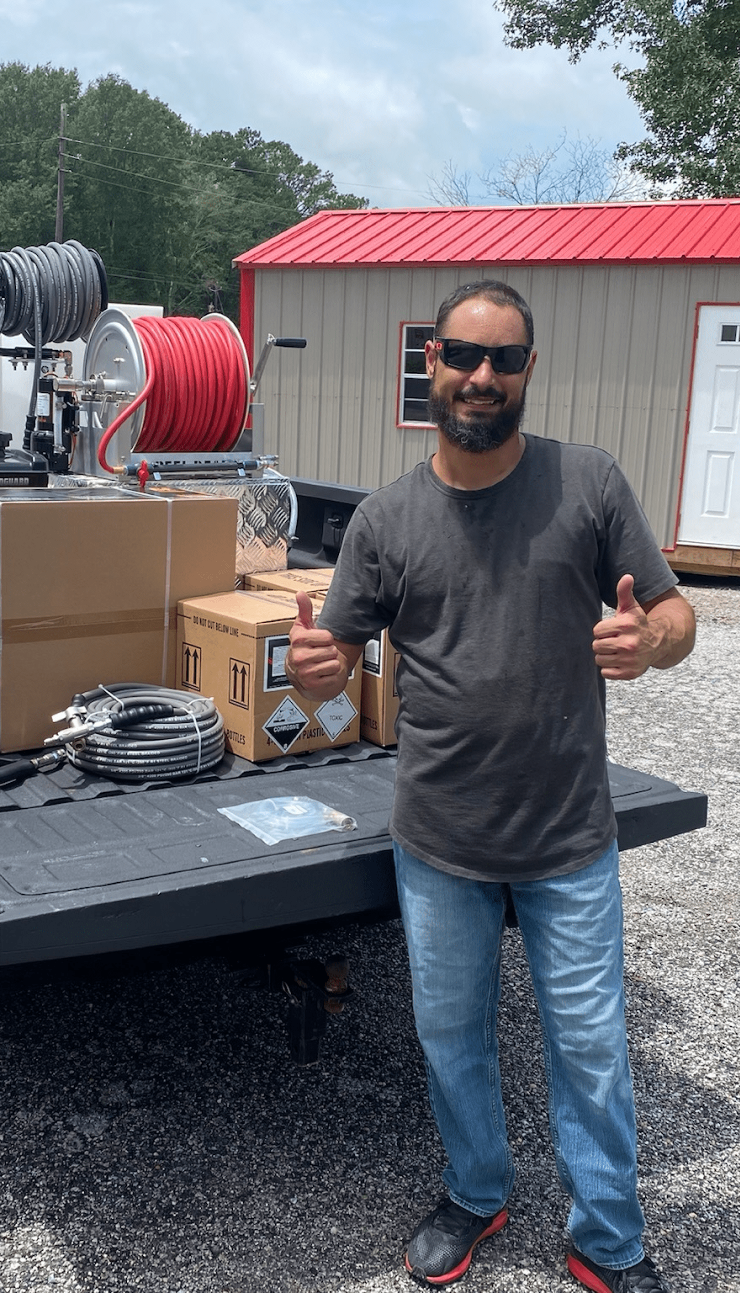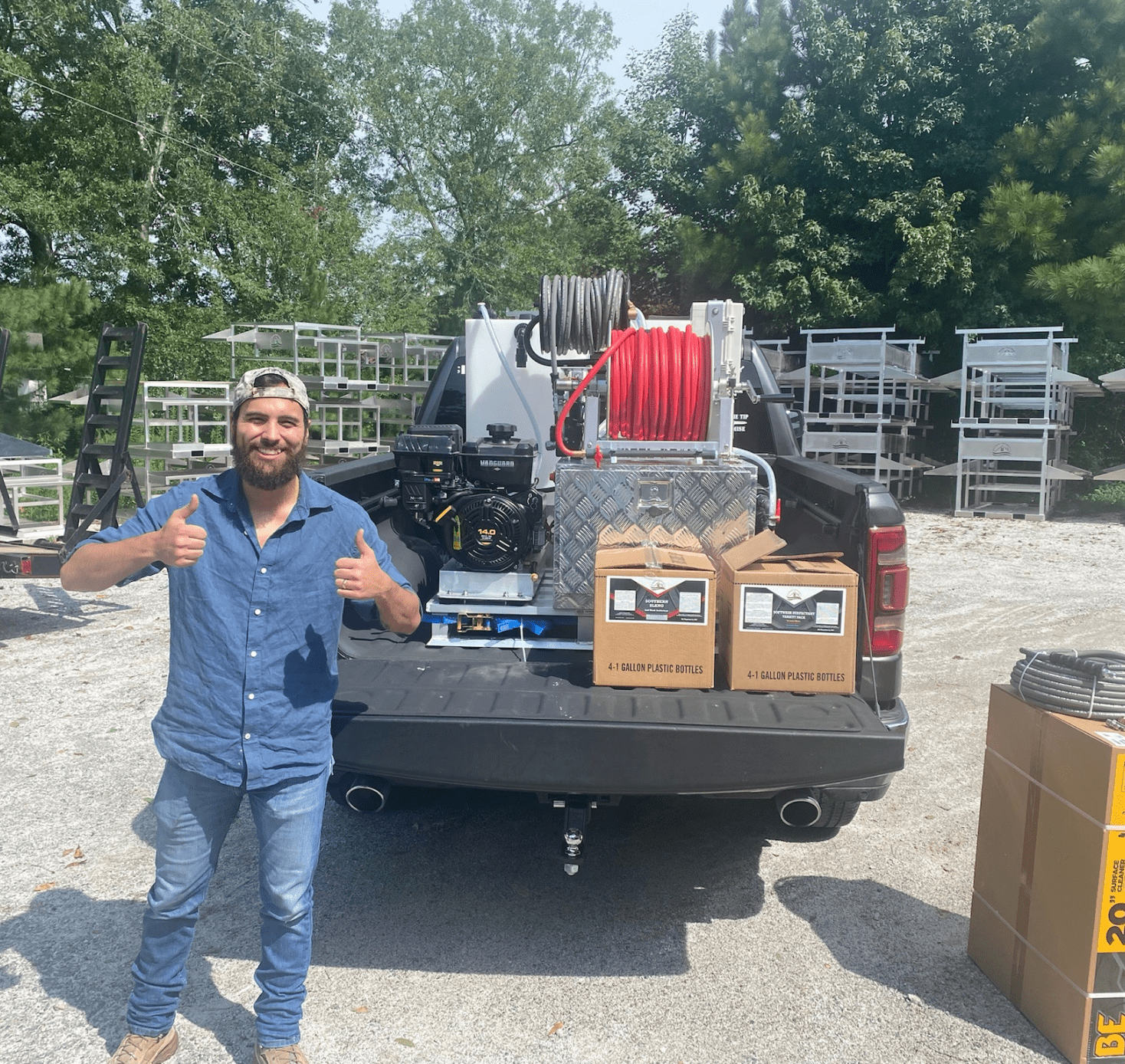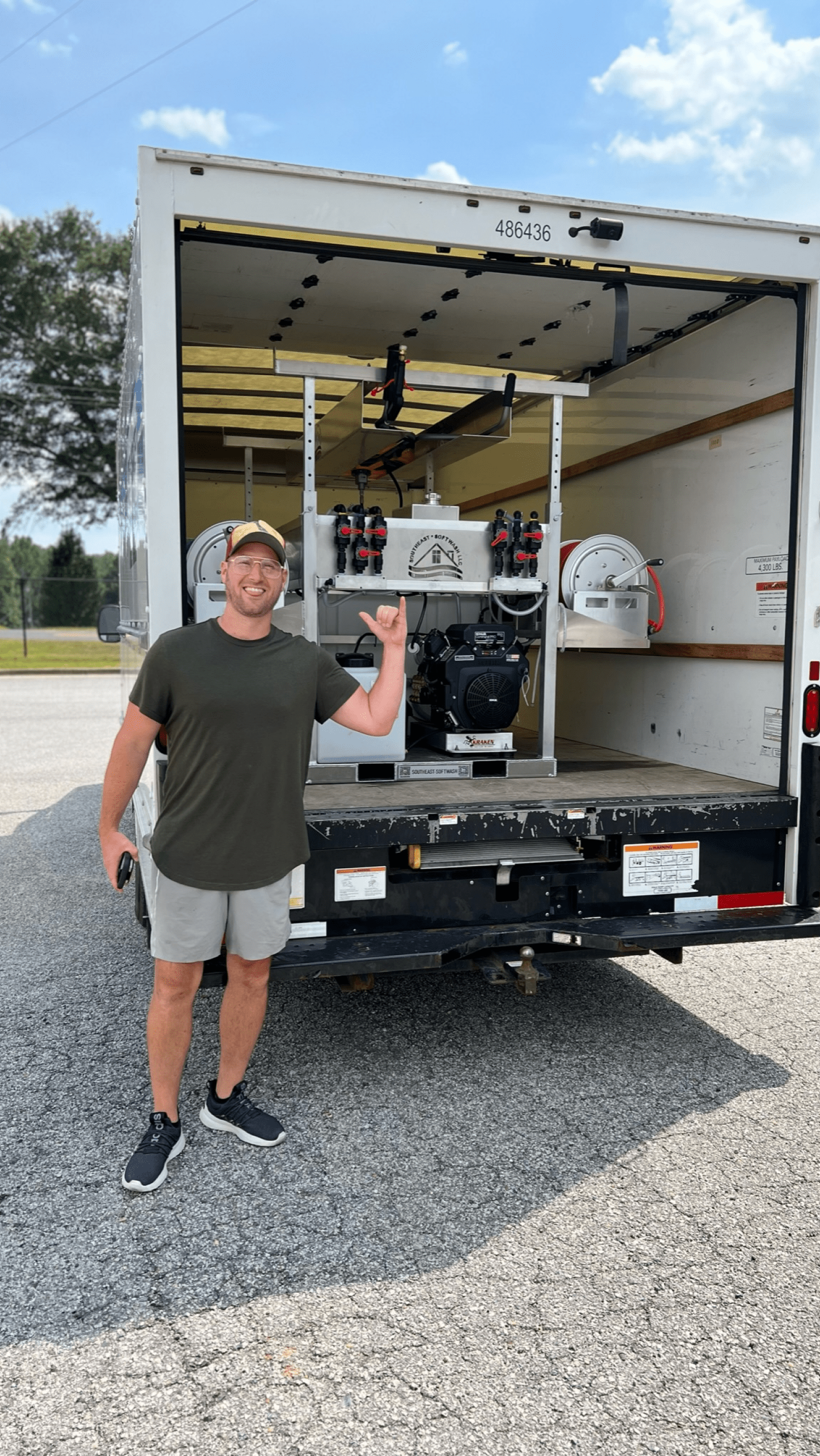 - 200' of softwash hose on a 18” Reel Big Deal hose reel.