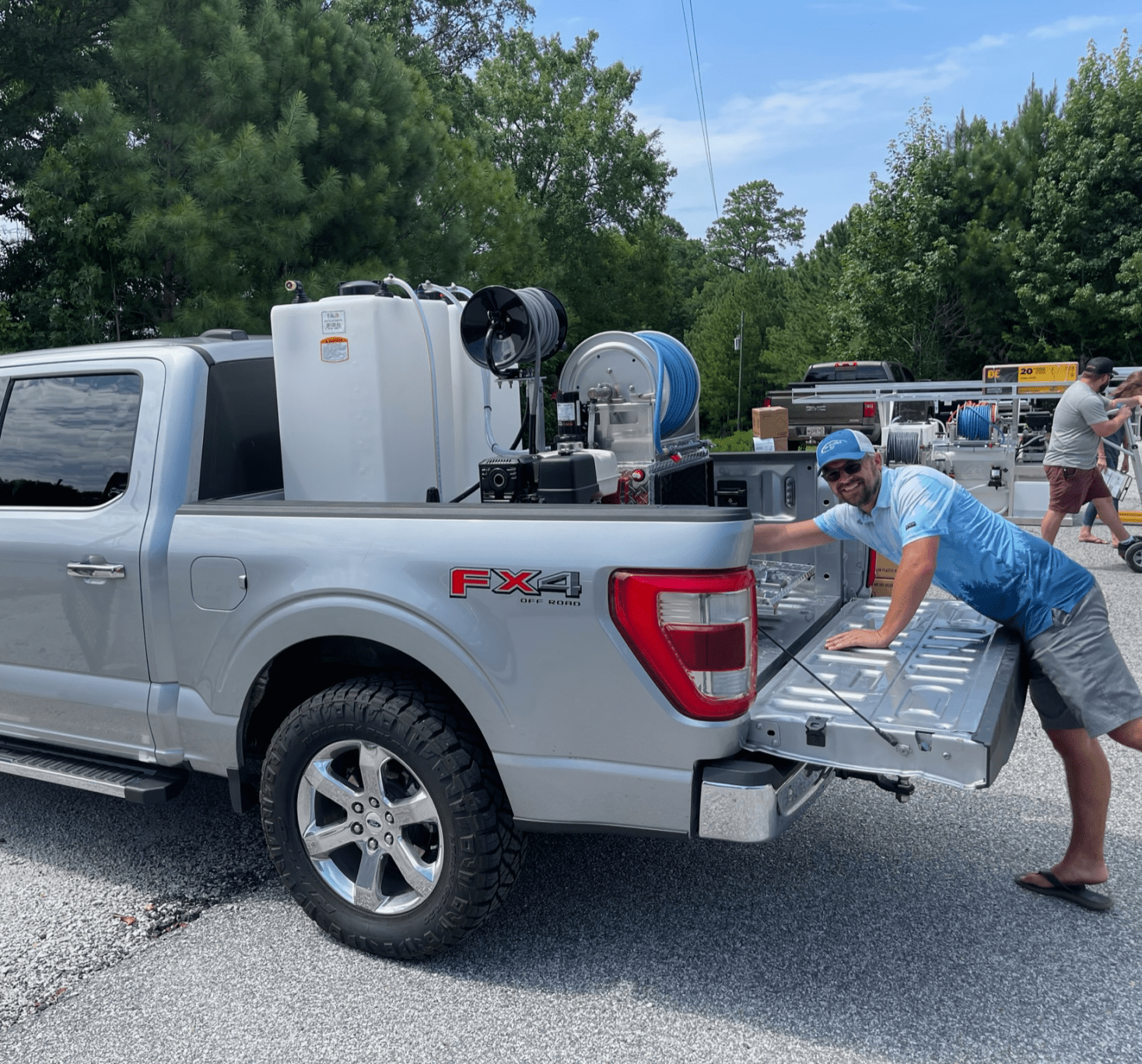 - 1 5.5gpm Commercial Grade pressure washer. 200 ft of pressure wash hose, on a 12” Reel Deal. (8gpm washer upgrade available)