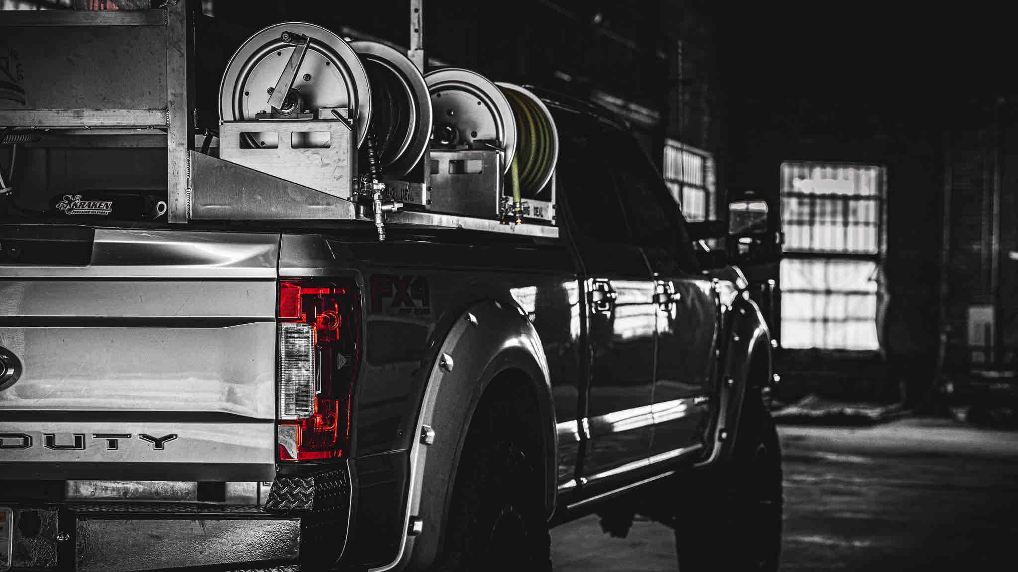 *Note* Although the AlumiMax skid series is designed to be removable from your truck, do not attempt to move with large volumes of liquid in the tanks. Full length forklift forks are required to evenly distributed weight across the platform. Also these soft wash units were designed to be used on a pickup truck bed. Putting them on a trailer may cause excessive wear and tear due to poor suspension*