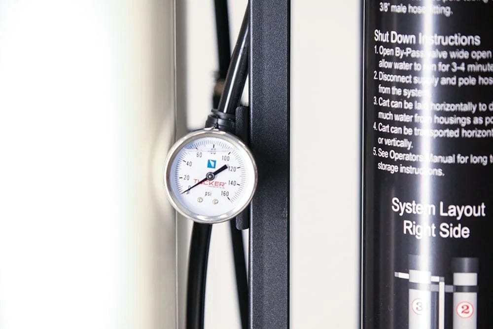 Tucker's commercial work horse! This system will produce more water than others making your cleaning time faster. The Tucker® - The 4060. Most every system on the market uses a 40" RO Membrane that can supply 1 pole on line pressure. Using (2) 40" RO Membranes gives you more flow and capacity, but the size and weight makes it completely impractical in a mobile application.