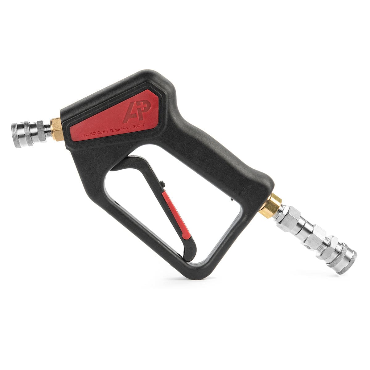 This is a very popular trigger gun style that lots of professional wash guys use everyday. The compact design and easy use style gun makes for quick work when out in the field. Stainless steel quick connects, means this gun will last longer than a Glock, and you'll spend no time on maintaining it. You can even add on a SKUNK live swivel so that the gun will rotate while in use (if you are boujee like that, reducing hose binding to zero)