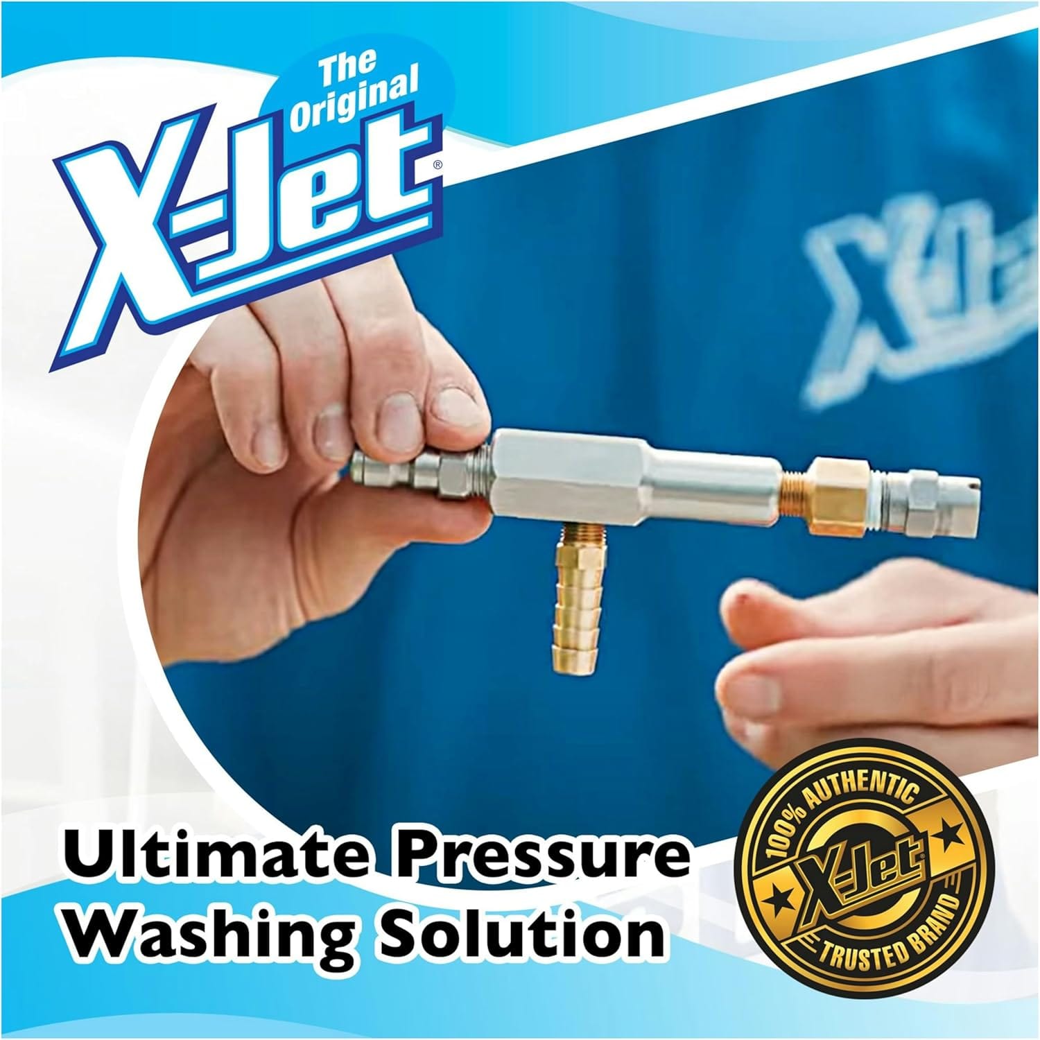 The Original X-Jet is the first EXTERNAL injection nozzle of its kind that injects and proportions cleaning solutions without going through your pump, hose, spray gun, or fittings. This fixed long range nozzle comes with a close range nozzle attachment included with this kit along with the 15 color coded proportioner set and 15 ft hose assembly which empowers you to have complete control over the chemical mixture according to your specific cleaning needs.