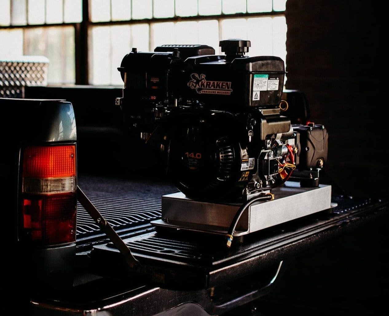 Product details Release the Kraken!!!SESW 14HP Engine w/ Comet or AR Pump Gear Drive 5.5 GPM at 3000 PSI Commercial Pressure Washer The custom built *Kraken* is a commercial unit with a compact footprint of 27" x 12". - This unit has an Electric Start and offers an 10AMP charging system.